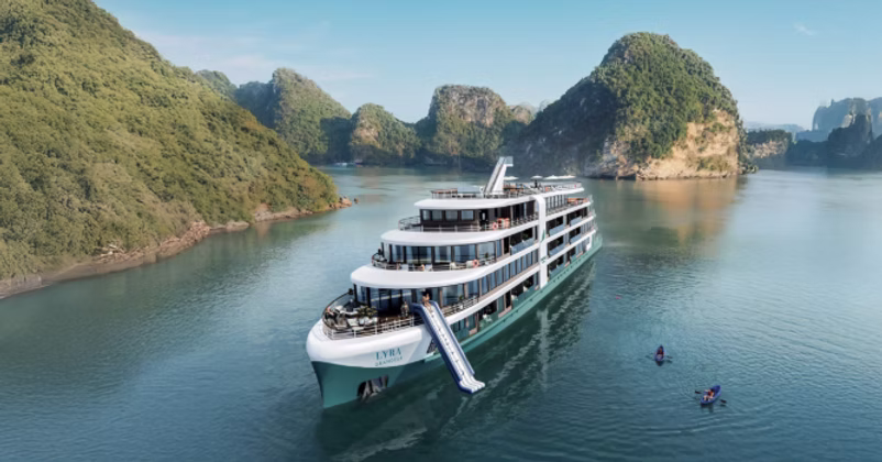 After breakfast, we will check out of the Apricot Hotel. We will depart Hanoi and travel to Ha Long Bay. On this 2.5-hour scenic drive, we will see the change from the bustling city into greener, more forested areas as we get our first glimpse of Ha Long Bay’s limestone islands. Here, we will board the Lyra Grandeur Luxury Cruise, which offers a breathtaking journey through some of Vietnam’s most stunning and tranquil seascapes.