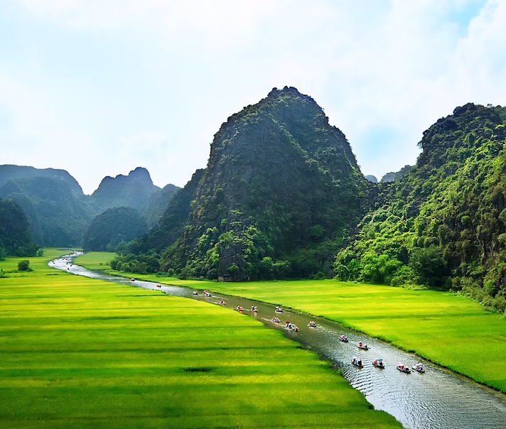 After departing the hotel this morning, we will embark on a 2-hour scenic drive to Ninh Binh Province, a scenic and culturally rich region known for its dramatic limestone karst landscapes, lush rice paddies, and historical significance.